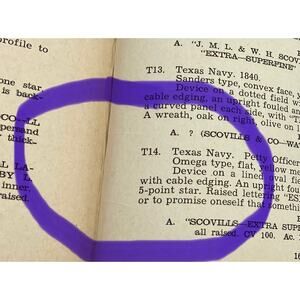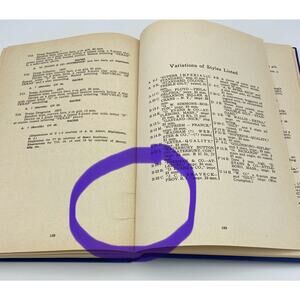 ***This book is in very good vintage condition. On inspection, I didn't notice any tears, writing, or bent or creased pages. The paper has yellowed, and there is a loop of binding thread sticking out a bit between pages 168 and 169, This has caused a slight indent in a few pages before and after it. There are also two pages that appear to have a little excess ink above the "catalog numbers". Please refer to the photographs, where I've circled these items in purple.