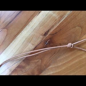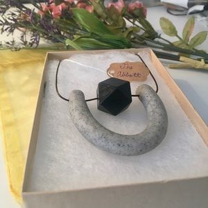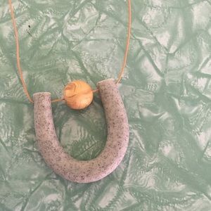 Granite-style u-bead and gold bead. Adjustable ties. This necklace features an adjustable cord so that it can be worn at a variety of lengths. At its longest it is 34 inches and drops 10 inches from the neck. At its shortest it measures 22 inches. I prefer to wear it at 28 inches, dropping 8 inches below the neck just under the bust. Not Madewell, listed as such for views.