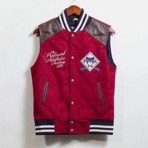 The Academy Men's Varsity Vest Wool Leather Trim Sleeveless Snap Button