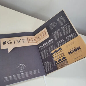 Directions: Register journal with unique journal code online, complete an "act of good", and pass it along. As it is passed along have users check the book in online to follow its journey. Once final act has been completed user can download pre-paid postage to have it sent to original user. Interactive & reflective notebook inspires Acts of Good to be performed in our everyday lives. Journal is meant to passed from one person to another after completing an act of good. After all 12 acts have been completed the journal is meant to be returned to the sender via pre-paid envelope to reflect & read about each act of good completedPre-prompted pages guide users & promote reflection. Made with heavy-weight durable paper & canvas wrapped outer for durability. Quality book created with pages of unique imagery & textures.