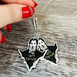 This listing is for a pair of acrylic Wednesday Addams Earrings earrings that says:
