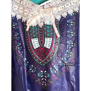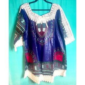 The African Star Traditional Unisex Dashiki Navy Blue w/White Lace New Tags OSFM