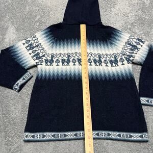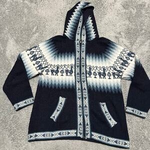 The Alpaca Connection Alpaca Hooded Sweater Womens Small Made in Peru Blue Aztec