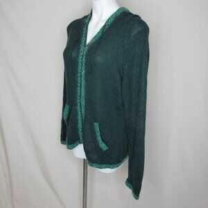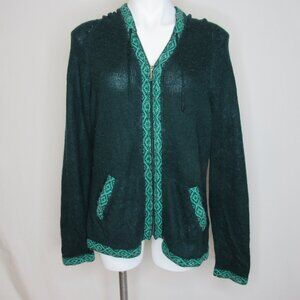 The Alpaca Connection Green Full Zip Hooded Cardigan Sweater Women's L Large