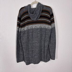 The Alpaca Connection Grey with Aztec Print Hooded Zip Up Sweater Size Large