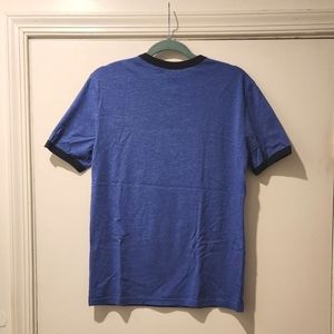 - Ringer style t-shirt with contrasting bands at neckline and sleeve hem