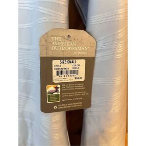 The American Outdoorsman for Women Icicle Blue Knit Jacquard sun protected, full zip jacket size small nwt quick dry evaporates moisture moisture wicking draws sweat away. Keep skin cool and comfortable retail $70. Pit to pit 16.5” length 23” (3629)