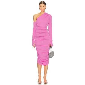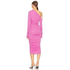 The Andamane Olimpia Midi Dress in Bubble. Size 38 (XS / Extra Small). Features one shoulder, long sleeves, ruched throughout, and midi length. Style T150123ATJP073. 94% Polyester, 6% Elastane. NWT / New with tags.