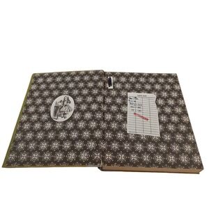 Hardcover Vintage edition of 'The Annotated Alice' by Lewis Carroll, featuring introduction and notes by Martin Gardner. This edition published by Bramhall House presents a comprehensive exploration of Alice's Adventures in Wonderland and Through the Looking Glass. The book exhibits a unique aesthetic, with a muted green and gray cover and library markings, including a withdrawn stamp and checkout card. Despite its previous library life, the book's content remains engaging and insightful. It would be perfect for collectors of vintage books, fans of Lewis Carroll, or anyone seeking an annotated edition for literary study.