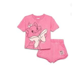 The Aristocats Marie Toddler Girl Washed Crewneck Top and Short Set 4T Pink New