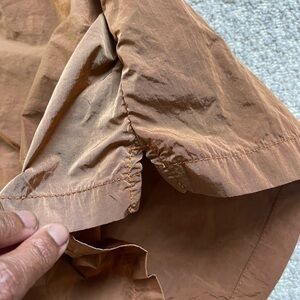 Iconic brand that is no longer producing clothing. These shirts are unisex and so interesting. Only flaw is that one of the cord ends is missing on one side of the drawstring. Can be replaced easily.