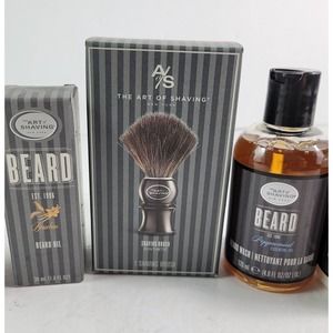 The Art of Shaving Set Peppermint Beard Wash Conditioner Oil Shaving Cream Brush