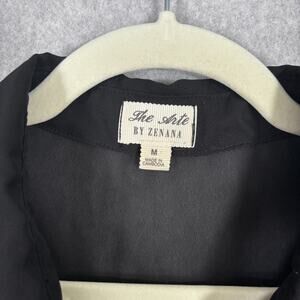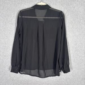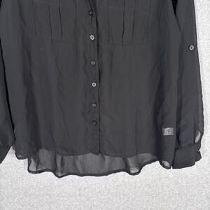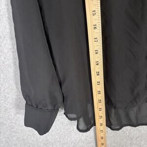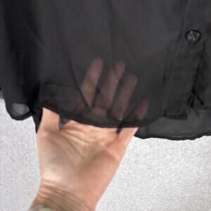 The Arte by Zenne Sheer Blouse Medium Button Up Long Sleeve Puff Whimsigoth Coquette Fairy Career Quiet Luxury Corp Career Work Office Business Church Preppy Academia Lagom Goth Feminine Romantic Mediterranean Witchy Black Pockets Collar College University School Teacher