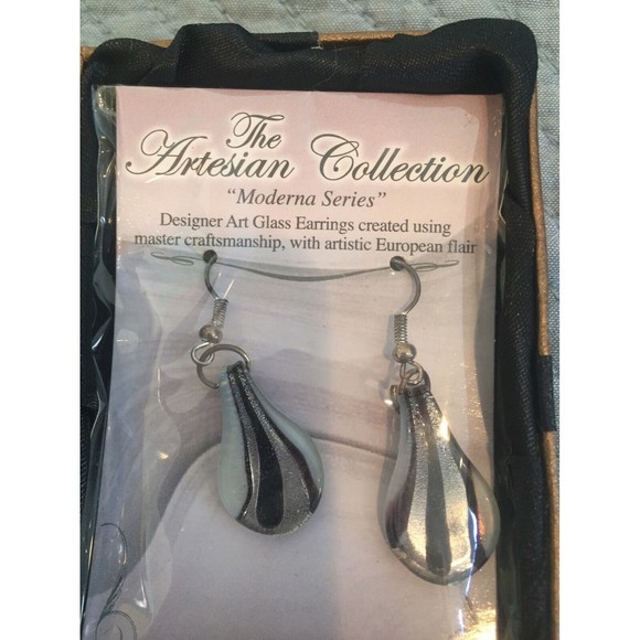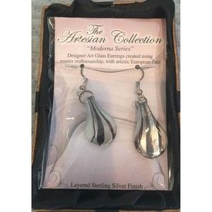 The Artesian Collection Moderna Series Black/Silver Layered Pierced Earrings NEW
