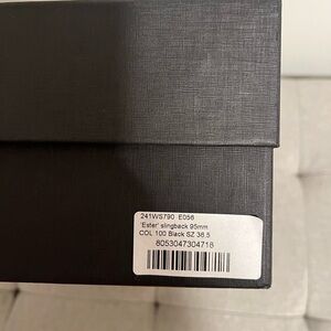 These black heels from The Attico showcase a pointed-toe design with sleek straps across the top, exuding a modern and sophisticated appeal. The stiletto-style heel and minimalist silhouette enhance their elegance, making them a perfect choice for any stylish occasion.