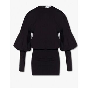 Embroidered logo at sleeve, midweight jersey knit. Perfect LBD for stylish events, date night, girls night or new year or any other party.