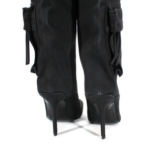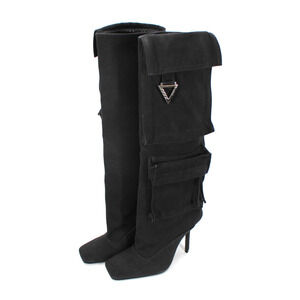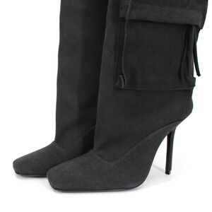 The Attico Sienna Cargo Boots NEW Knee High Black Denim Pockets Stiletto 37.5