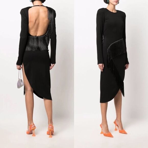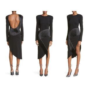 The Attico panelled long-sleeved midi dress black IT44 US8