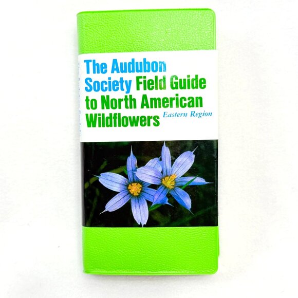 A comprehensive softcover vinyl field guide for identifying North American wildflowers (Eastern division) featuring 700 full color vibrant identification photos, scientific details, and compact design for easy portability.