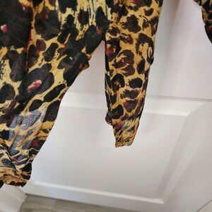 This unlined, sheer blouse is perfect for women who want to make a statement with their fashion choices. The easy-care fabric ensures that it is comfortable to wear and simple to maintain. This blouse is a plus size (26/28) and is suitable for any woman who loves the leopard theme.