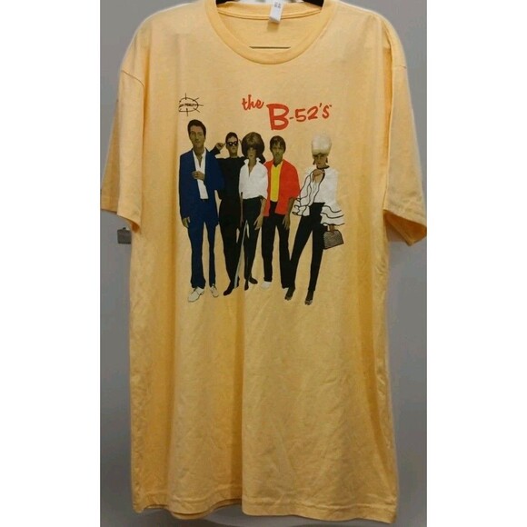 Super clean mens XL B-52's graphic tee featuring the full band lineup and "High Fidelity" text on front. Bright yellow base on a soft Next Level Apparel tee. Lightweight cotton/poly blend with a nice relaxed drape. Looks unworn maybe tried on once, if that.