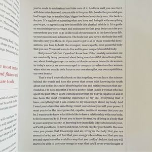 As Cameron states early in the book, it is not a diet book, nor she claims to know it all. It's also not a portfolio of her photos. There may be around 12 photos of her altogether, including the cover and back. This is an informative book looking at a woman's body and mind in a holistic way. M~ ****