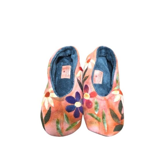 The Bag Ladies Of Sequin Art Floral Slip-On Slippers 11-12 Multicolor Fleece Sof