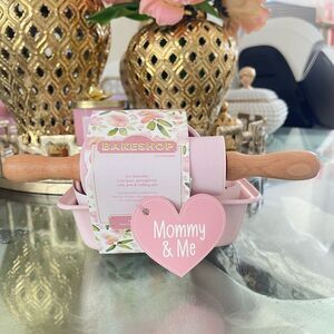 Charming pink baking set with a rolling pin. Perfect for baking with kids!!