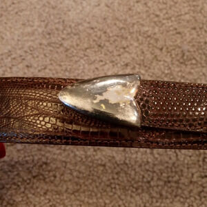 The Bandera Collection Vintage Lizard Brown Leather Men's Unisex Dress Belt sz 38, Y2K excellent condition, normal minimal wear, silver metal buckle, gorgeous and classic belt goes with any jeans, leather cowboy boots or pants! Great gift! Will ship right away. Check out my other design items