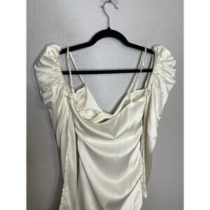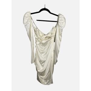 The Bar Women's Twist Cutout Ruched Mini Dress Padded Puff Sleeves Ivory Size 4