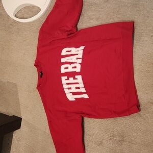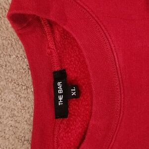 Experience comfort and style with The Bar's red hoodie, featuring a bold graphic design. This relaxed fit sweatshirt is perfect for casual outings, offering both warmth and a trendy look.