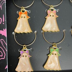 Set of 6 ghost wine charms in various colors. Perfect for a Halloween party.