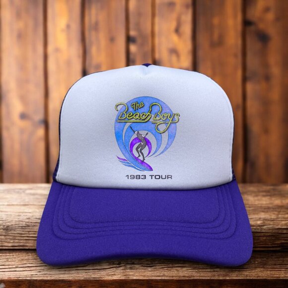 The Beach Boys 1983 Tour Mens Trucker Hat Purple Snapback 60s Surf Rock Ball Cap
