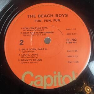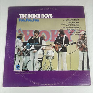 The Beach Boys Fun Fun Fun Vintage 1971 Vinyl LP California Surfing Music STBB-701. Pre-owned condition. Vinyl is in VG condition, has some marks and light scuffs, but plays well. Labels are clean, but have light wear from normal play. Inner sleave is plain white, which is yellowed and has wear. Original cardboard cover has edge wear and some ring/face wear. Review photos carefully for all details.