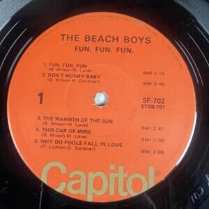 The Beach Boys Fun Fun Fun Vintage 1971 Vinyl LP California Surfing Music STBB-701. Pre-owned condition. Vinyl is in VG condition, has some marks and light scuffs, but plays well. Labels are clean, but have light wear from normal play. Inner sleave is plain white, which is yellowed and has wear. Original cardboard cover has edge wear and some ring/face wear. Review photos carefully for all details.