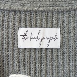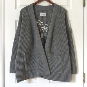 The Beach People The Twin Palms Ribbed Knit Open Front Cardigan Sweater Gray M/L