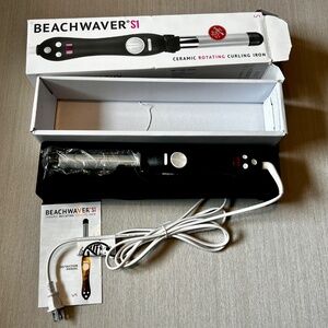 Ceramic rotating curling iron. Easy styling with precision. Sleek black and silver design.