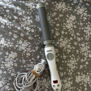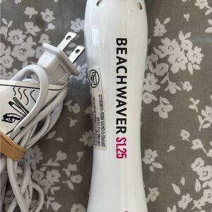 *LAST PHOTO IN SLIDE SHOW IS IRON PLUGGED IN AND ON TO SHOW IT WORKS* Effortlessly style your hair with The Beachwaver Co. S1.25 curling iron. Features a sleek white and gray design. Perfect for creating beautiful waves.