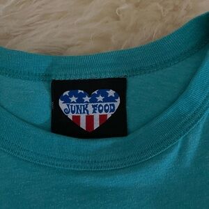 This cute top is in great condition. It’s a medium green and features The Beatles on the front.