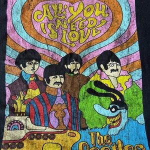 Vibrant Beatles design on a black short sleeve tee. Eye-catching and stylish.