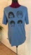 Light blue short-sleeve t-shirt featuring bold black silhouettes of The Beatles’ faces. John, Paul George and Ringo!