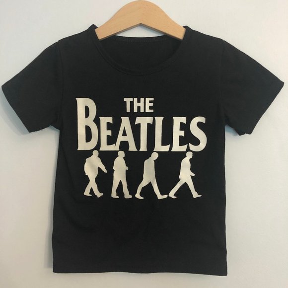 The Beatles Tee. Awesome black tee with Beatles graphic in white. Excellent condition. No inside tags (shirt came this way) but measured and it looks to size at 2T. See measurements below before purchasing. I love this shirt!