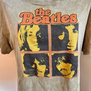 The Beatles green 100% cotton band tshirt womens Medium vintage top music festival, distressed vintage look