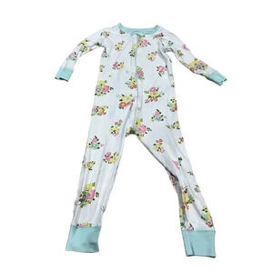 Transform bedtime into a garden of dreams with The Beaufort Bonnet Company's floral pajama set. Crafted from soft Pima cotton, this lightweight, one-piece set is perfect for your little girl. The zip-up design ensures easy wear, while the charming floral pattern adds a touch of whimsy to her nighttime routine. Ideal for cozy nights and sweet dreams, this pajama set is both comfortable and machine washable. This pre-owned set has some spots, as shown in the photos. Smoke free and pet free home.
