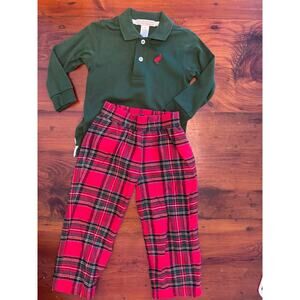 Bundle includes Sheffield pants flannel plaid size 2T, long sleeve matching polo 18-24 month worn once for Xmas photos last year