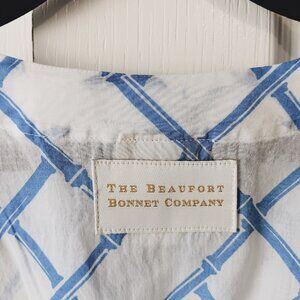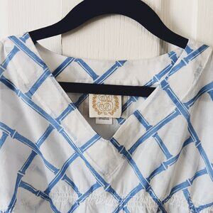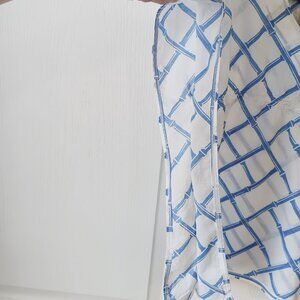 Excellent pre-owned condition. White background with blue diamond bamboo pattern.