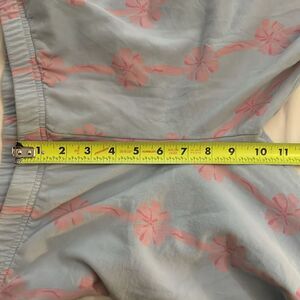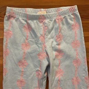 Light blue, 100% pima cotton, pull-on, No Bow No Go Gates Sweeney sweatpant jogger pants by The Beaufort Bonnet Company (TBBC), in a girl's size 12. Vertical pink bow pattern. Elastic waist and ankles. Machine washable. Approximate measurements shown in photos. In great pre-owned condition.