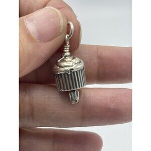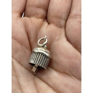 If you love to bake, this is the most adorable piece of jewelry to own. Handcrafted and made to order in sterling silver. This charm bell is shaped like a cupcake with a jump ring at the top to secure it to a charm bracelet, necklace, etc and a spatula for the clapper. Measuring one and a half inches tall with the jump ring. Brand new in box. Comes from a smoke-free home. Real cost $65