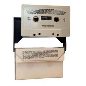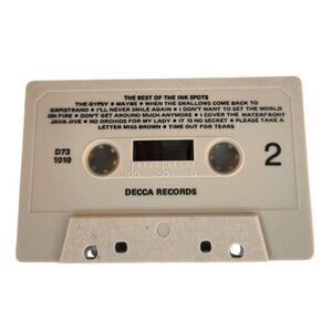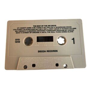 This is a cassette tape titled "The Best Of The Ink Spots," featuring renowned classic tracks by The Ink Spots. Released under Decca Records (catalog number 1010), this cassette showcases the timeless melodies and harmonious vocals of the quartet. With tracks like "If I Didn't Care," "The Gypsy," and "I Don't Want To Set The World On Fire," this collection is a substantial nod to their contributions to the music industry. The cassette casing and tape itself show normal signs of age and use but remain functional for playback. Printed in the United States, this stellar compilation is a collectible for enthusiasts of vintage music, capturing the essence of an era that defined harmony and heartfelt lyrics.