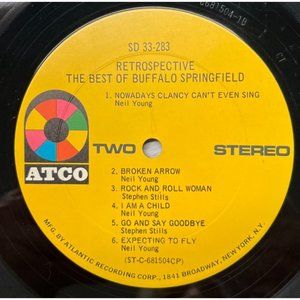 The Best of Buffalo Springfield Retrospective Vinyl LP 1969 Atco Records in Shrink No Barcode Atco SD-33-283